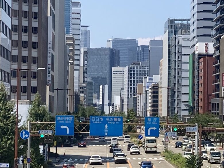 間違えて「1A出口」「1B出口」に出られた場合は、名古屋駅方面(西方向)へ向かって桜通沿いを道なりに真っ直ぐ進み、徒歩3分で到着します。