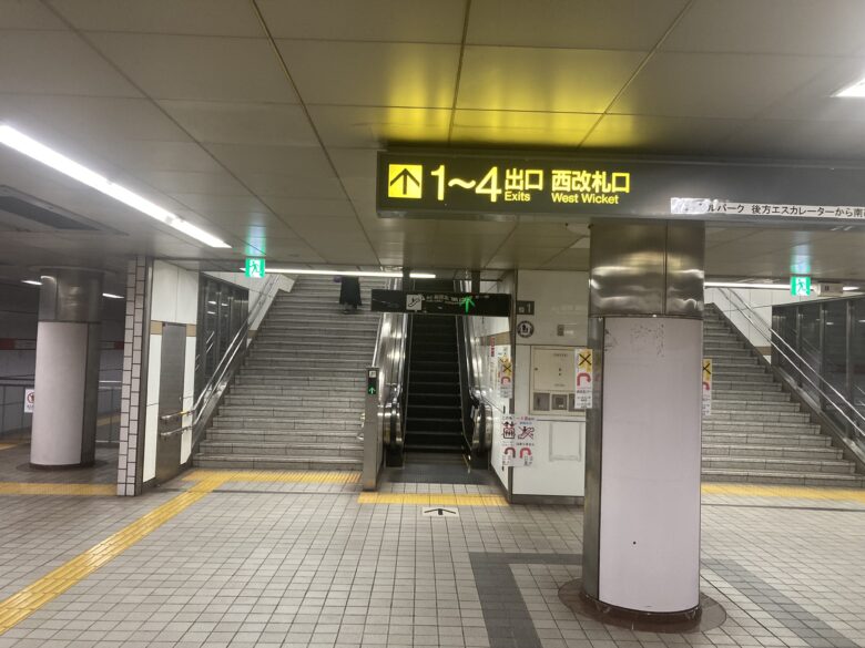 地下鉄桜通線からお越しの場合は、到着ホームの最東端・名古屋駅方面寄りのエスカレーターをお上がりください。地下鉄名城線からお越しの場合は、一旦、桜通線ホームに降りていただき、名古屋駅方面寄りのエスカレーターをお上がりいただくと分かりやすいです。