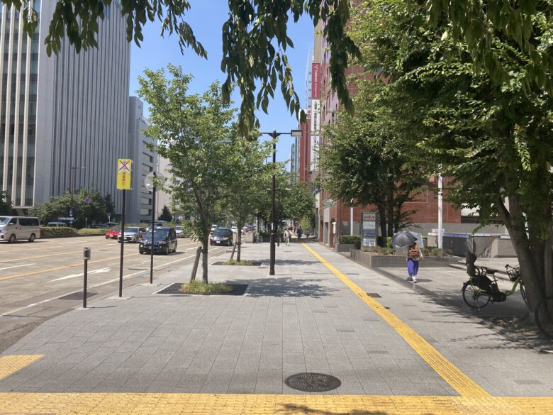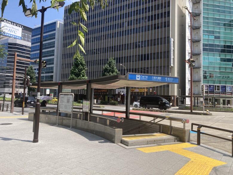 間違えて「1A出口」「1B出口」に出られた場合は、名古屋駅方面(西方向)へ向かって桜通沿いを道なりに真っ直ぐ進み、徒歩3分で到着します。