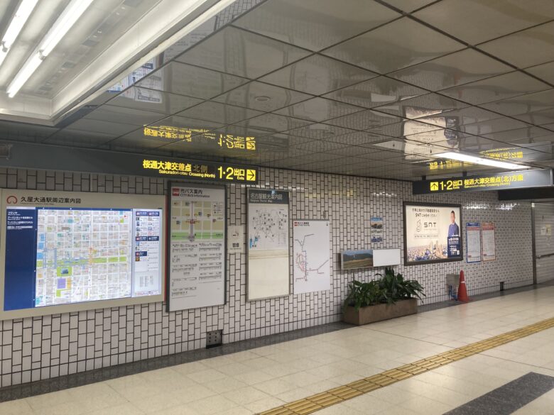 ※久屋大通駅には、1番出口のほかにセントラルパークの「ゲート1A出口」「ゲート1B出口」がありますが、「1番出口」とは異なります。